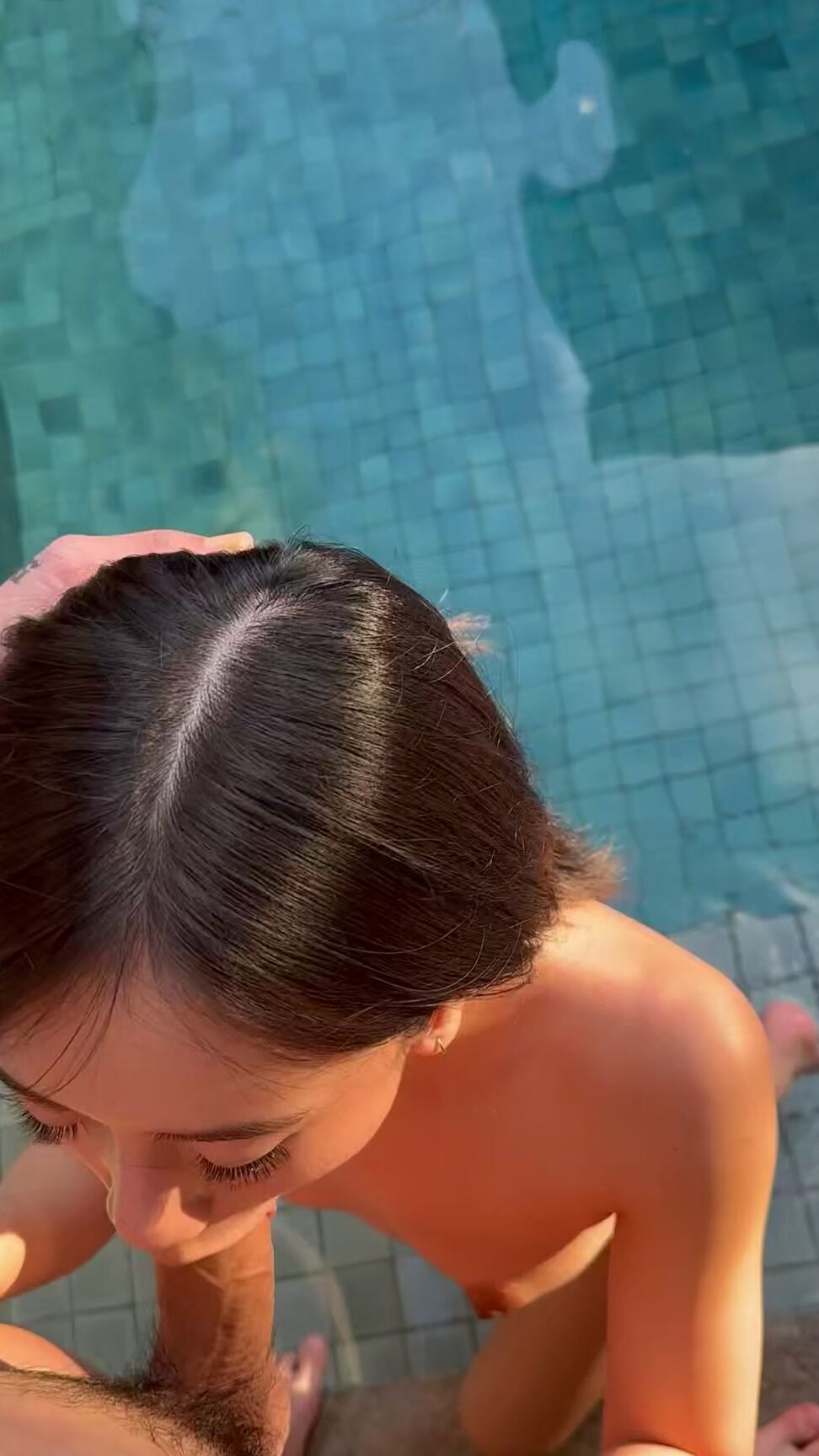 Hot asian babe swimming pool BJ
