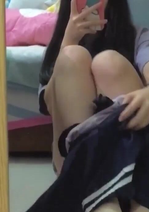 chinese girl doggy mirror selfie
