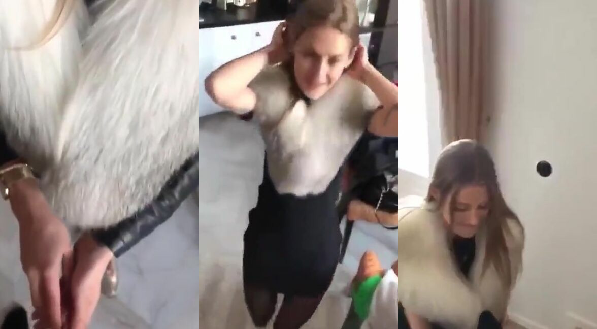 Blonde chick in fur coat blowing big cock