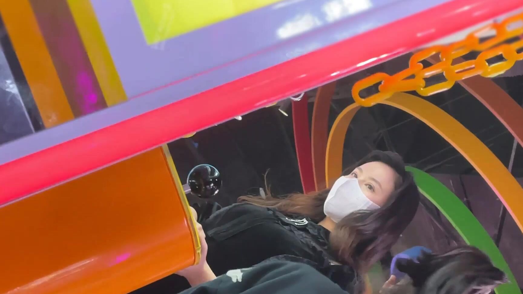 asian girl playing with black dildo