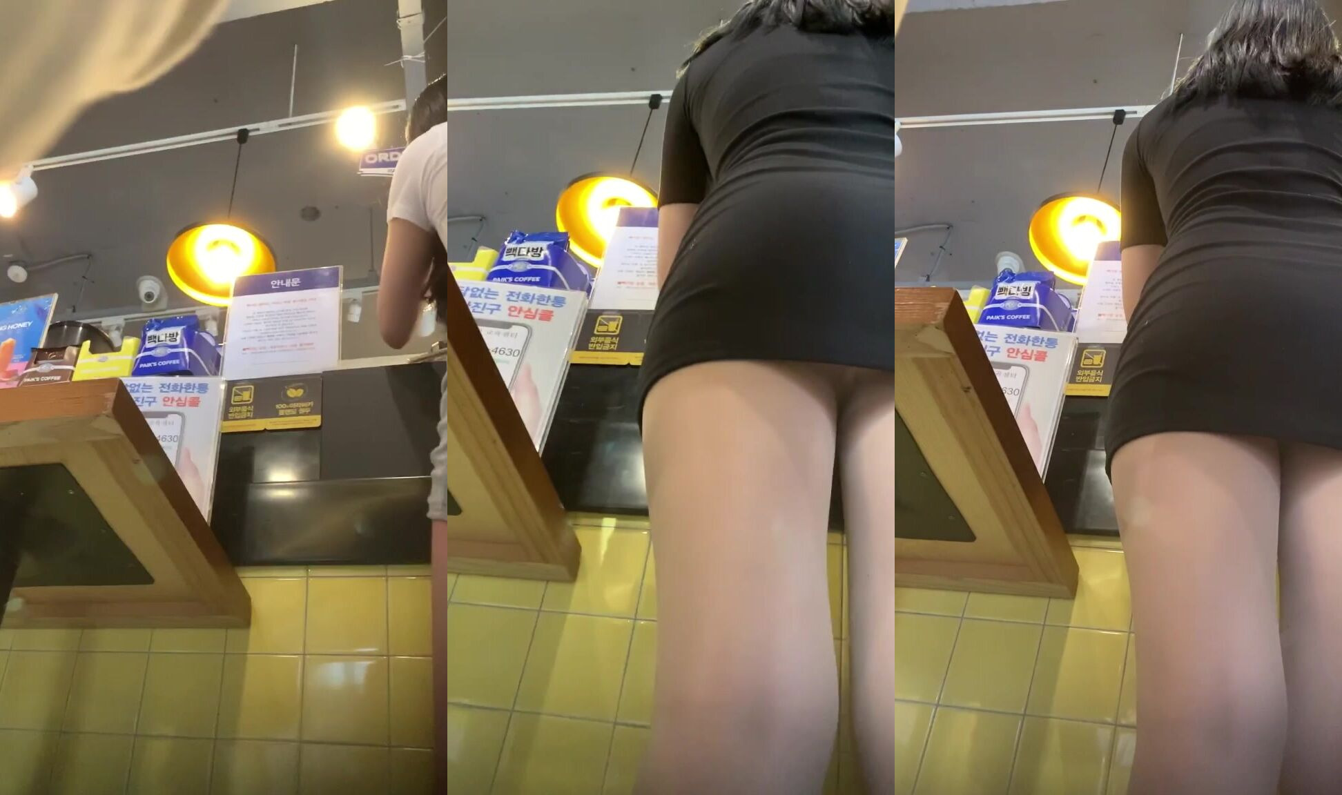 Upskirt in cafe of 3 sg teens